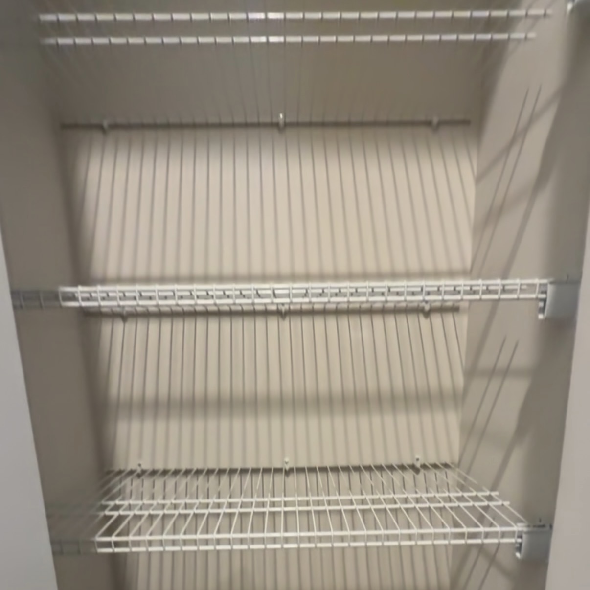 - Faux wood shelf covers to hide the builder-grade wire shelves